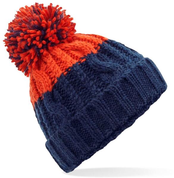 Beechfield Kétszínű kötött sapka pomponnal - Sötétkék / piros (B437-1000289582)