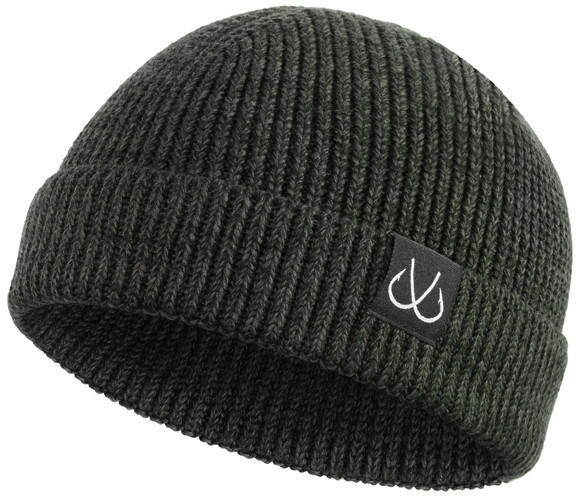 A sapka szabása fül fölé érő hajtókával végződik, amely nemcsak praktikus, hanem esztétikus is. A bordás kötött minta modern megjelenést kölcsönöz, míg az elején elhelyezett diszkrét, két keresztezett horog logó finoman utal a horgászat világára. Ez a visszafogott dizájn lehetővé teszi, hogy a sapka ne csak a vízparton, hanem városi környezetben is jól mutasson.